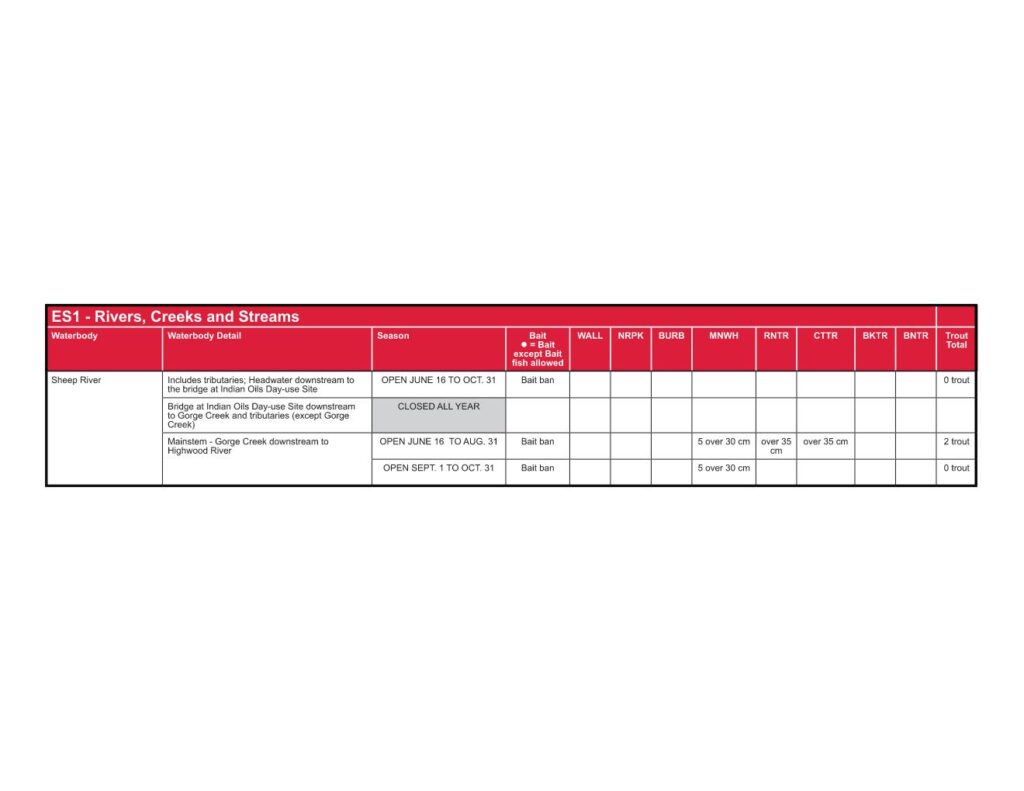 Be aware of Alberta’s fishing regulations, including special rules for Bull Trout, which are catch-and-release only.